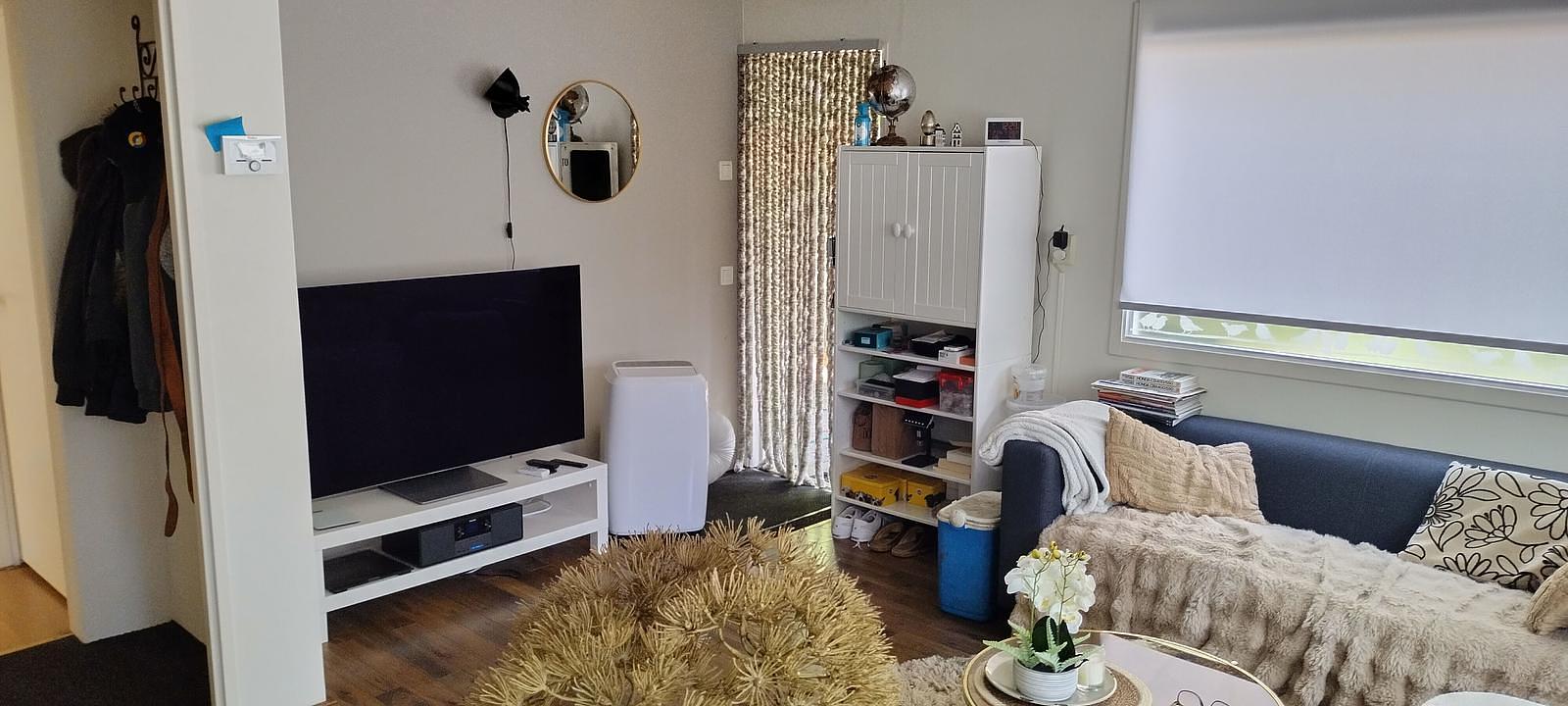 Comfortabel chalet met complete keuken, luxe badkamer en centrale verwarming. Meubels zijn over te nemen in overleg.