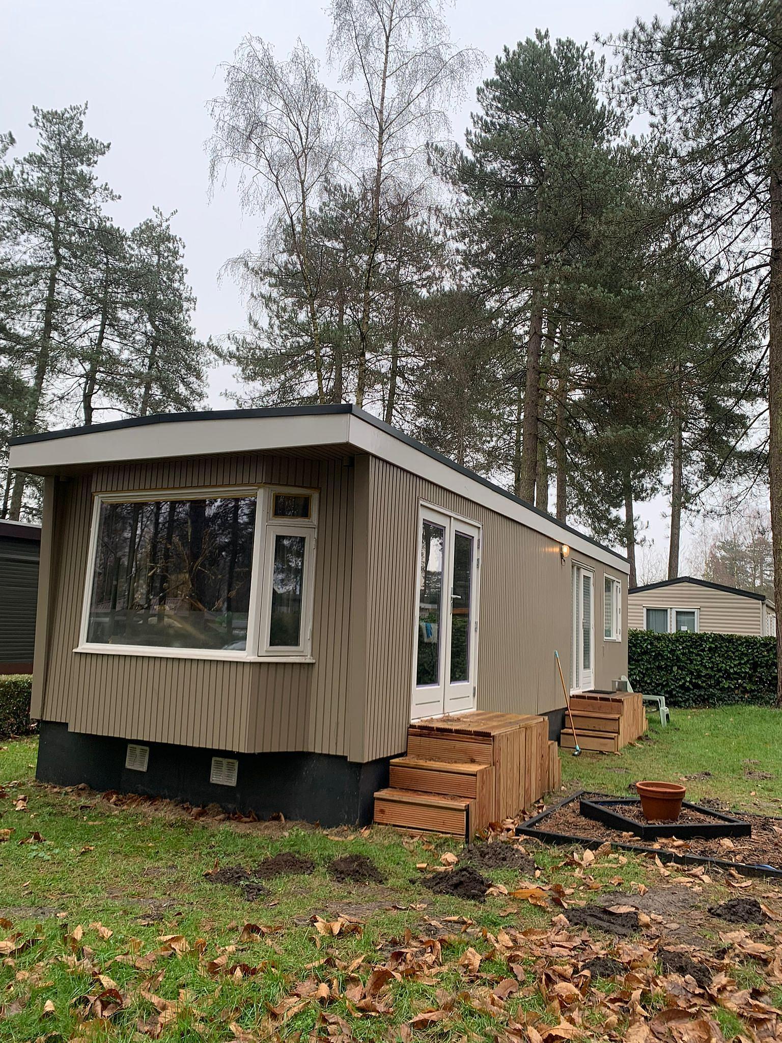 Volledig gerenoveerde stacaravan, geschilderd, deels gemeubileerd met 1 slaapkamer. Nieuwe pellet kachel, Airco, nieuw dak en dubbele beglazing.
